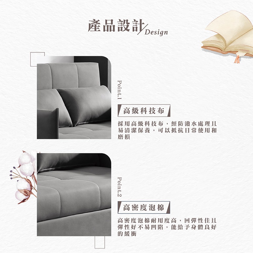 【Hampton 漢汀堡】德瑪沙發床(沙發床/沙發/布沙發/布沙發床)