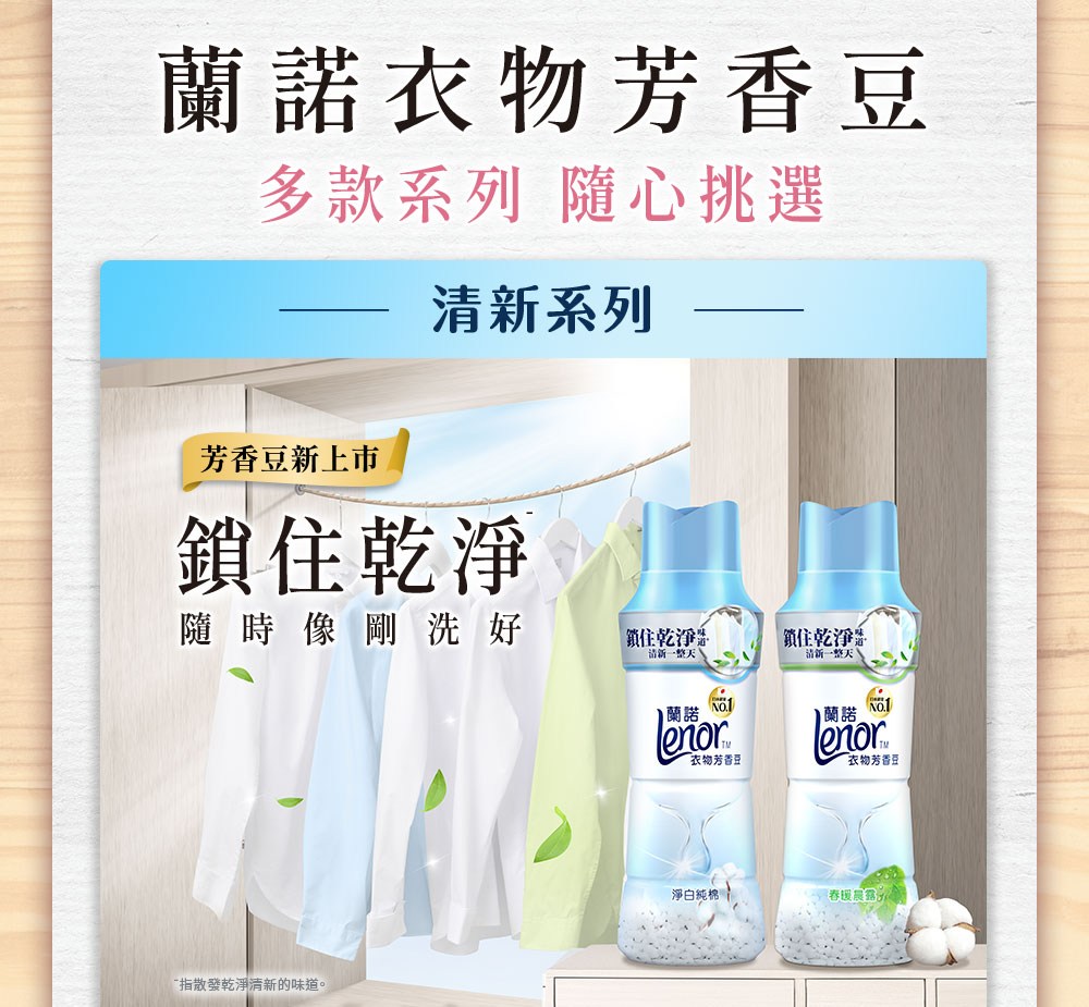 【Lenor 蘭諾】衣物芳香豆(淨白純棉)180ml