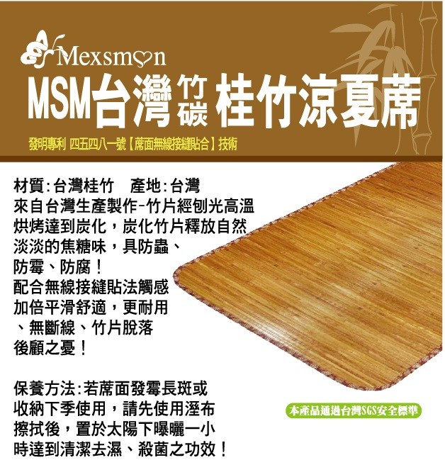 台灣製碳化桂竹涼夏蓆 雙人加大6x6尺