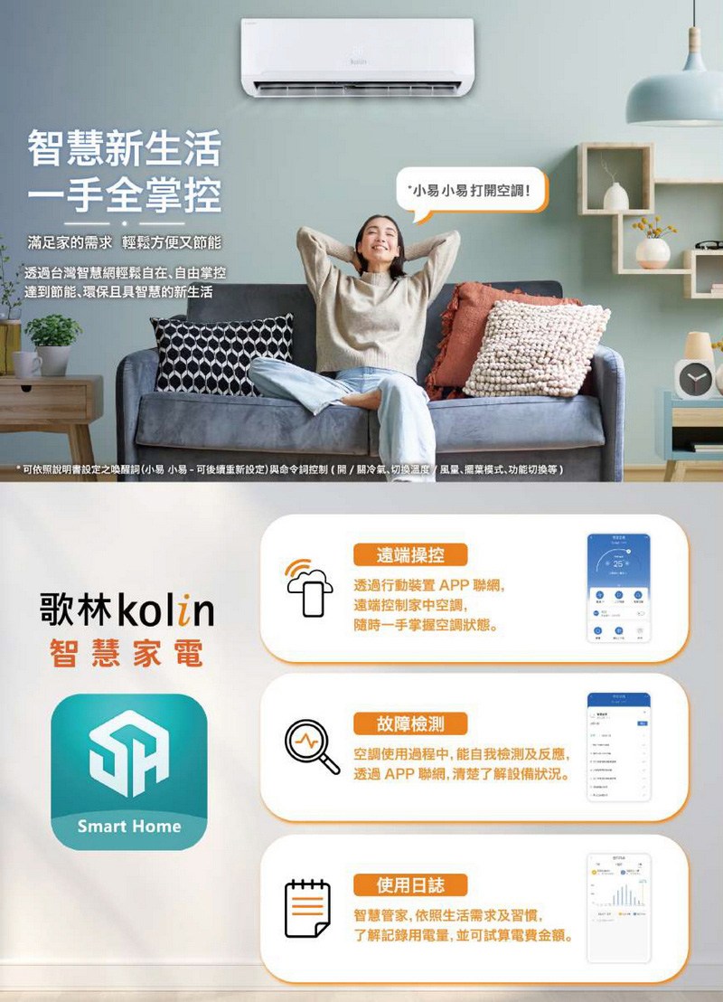 Kolin歌林4-5坪+4-5坪一級變頻冷暖語音聲控一對二分離式冷氣KDV-P562M201+KSA-PK282DV03A+KSA-PK282DV03A~含基本安裝+舊機回收
