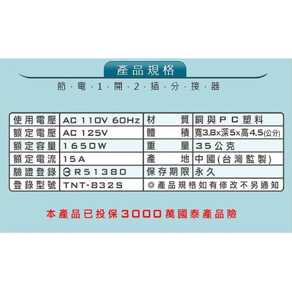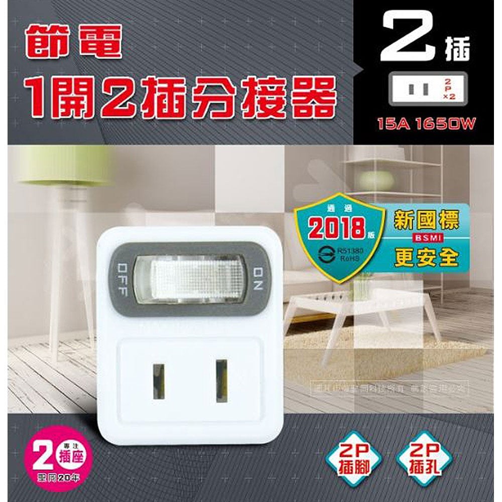 品名:節電1開2插分接器