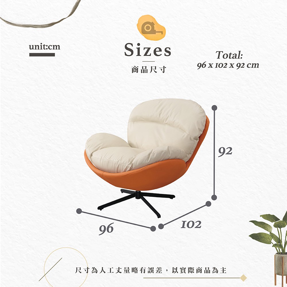 文創集 拿帝纖維皮革可旋轉休閒椅(可360度旋轉)-81x95x100cm免組