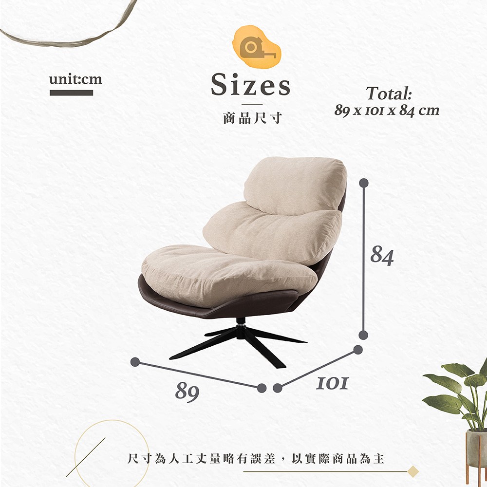 懷特舒適旋轉單人沙發