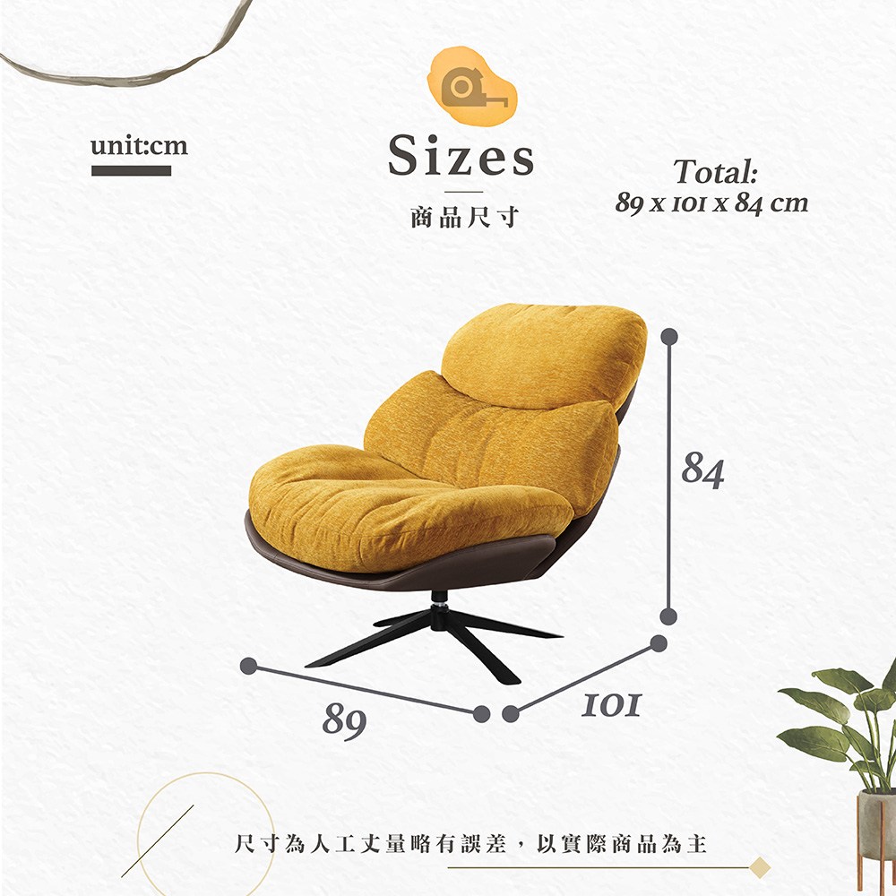 【Hampton 漢汀堡】那倫旋轉休閒椅-土黃色(休閒椅/旋轉椅/單人椅/沙發椅/單人沙發椅)