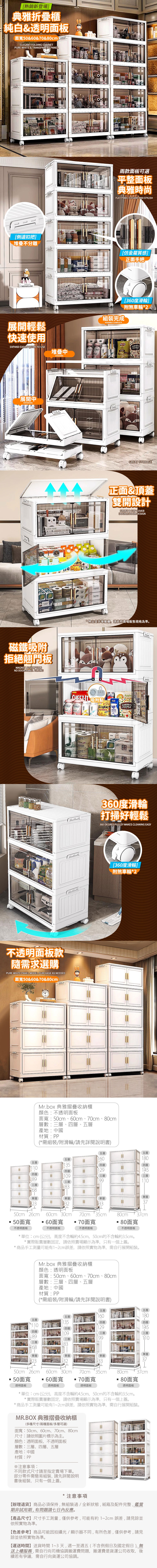 【Mr.box】60面寬摺疊前開式四層收納櫃-附滑輪60面寬四層-白色-不透明面板