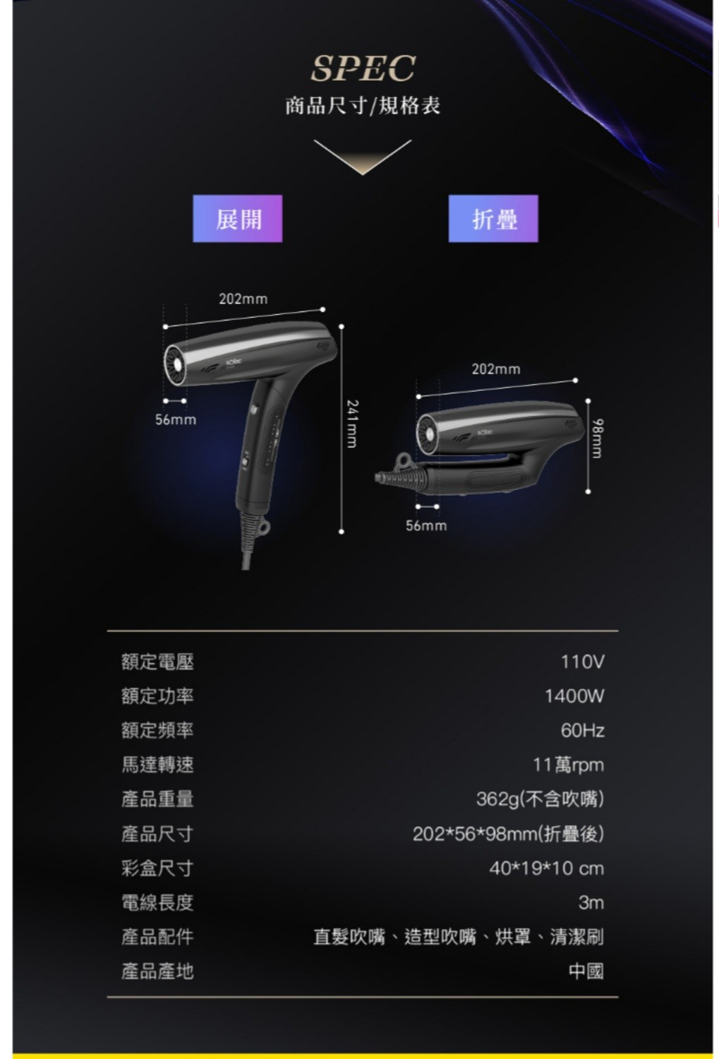 SOLAC 雙效離子智能吹風機 星宇黑/極光紫 SD-1600極光紫