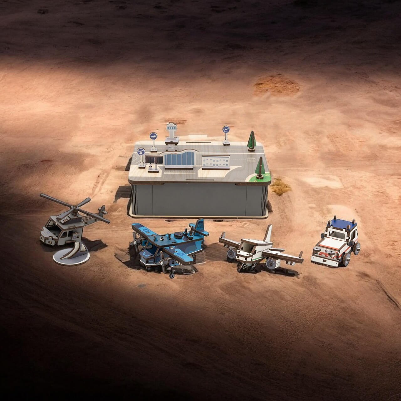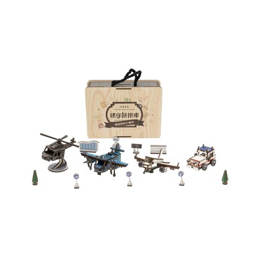 動手組裝: 依照說明書的指示,將木質零件小心地從板上取下,並逐步組裝成黑鷹直升機、S-2T反潛機、小飛機和行李托運車。可搭配配件道具打造迷你機場情境。
