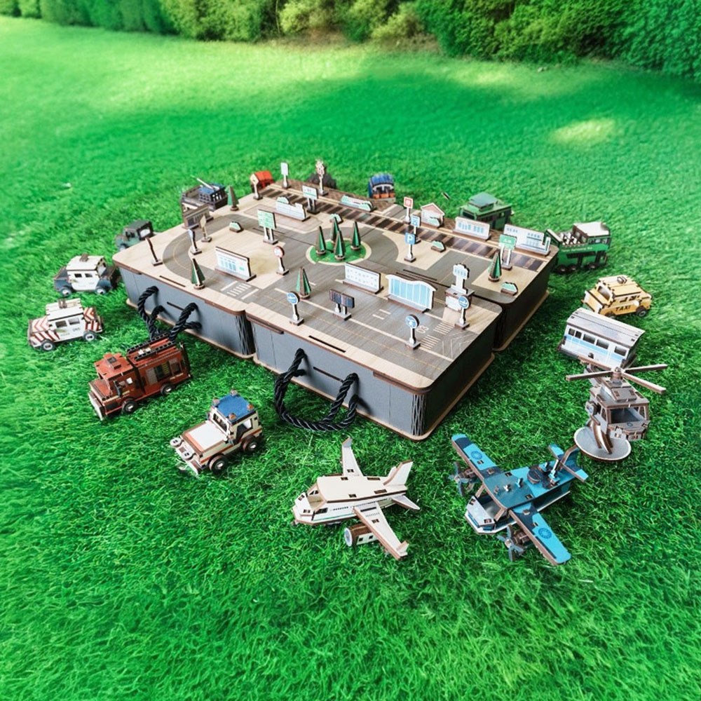動手組裝: 依照說明書的指示,將木質零件小心地從板上取下,並逐步組裝成軍用卡車、經典小警車、國道小警車和跑跑消防車。可搭配配件道具打造情境。