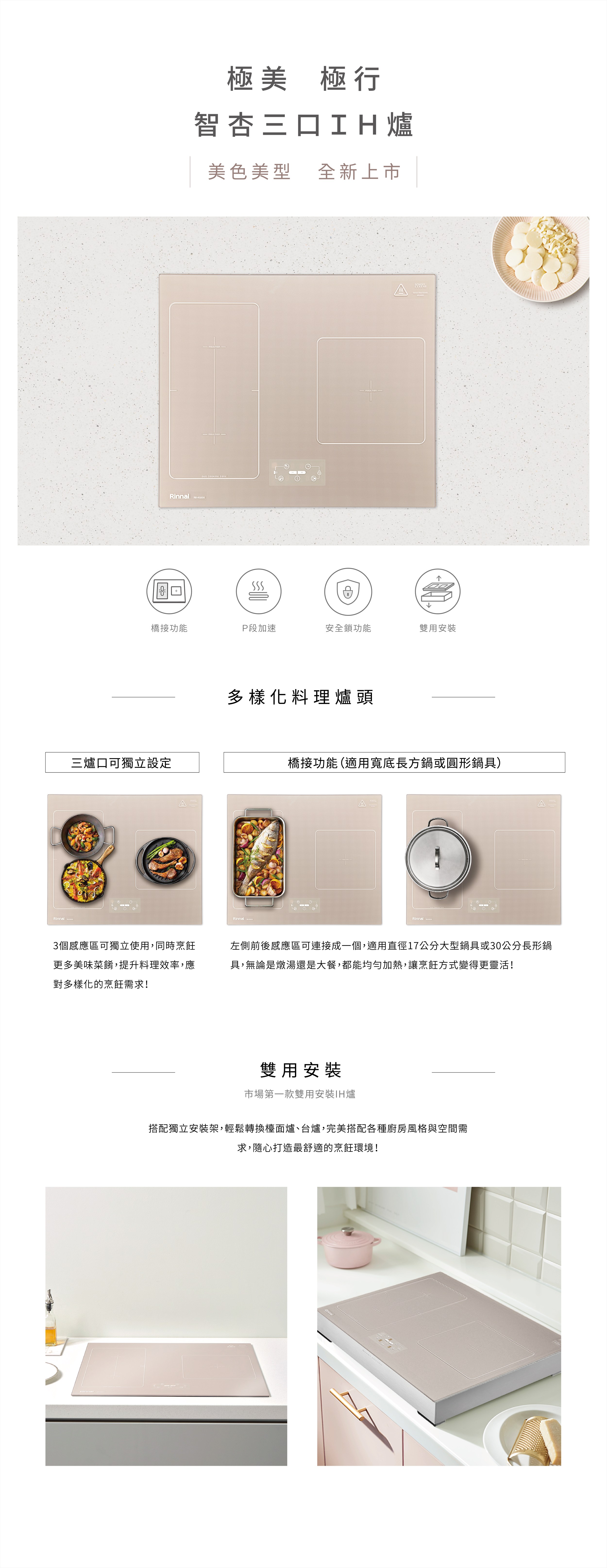 ➊ 全新杏色:跳脫黑白色,是市面唯一以柔和杏色為配色的IH爐
