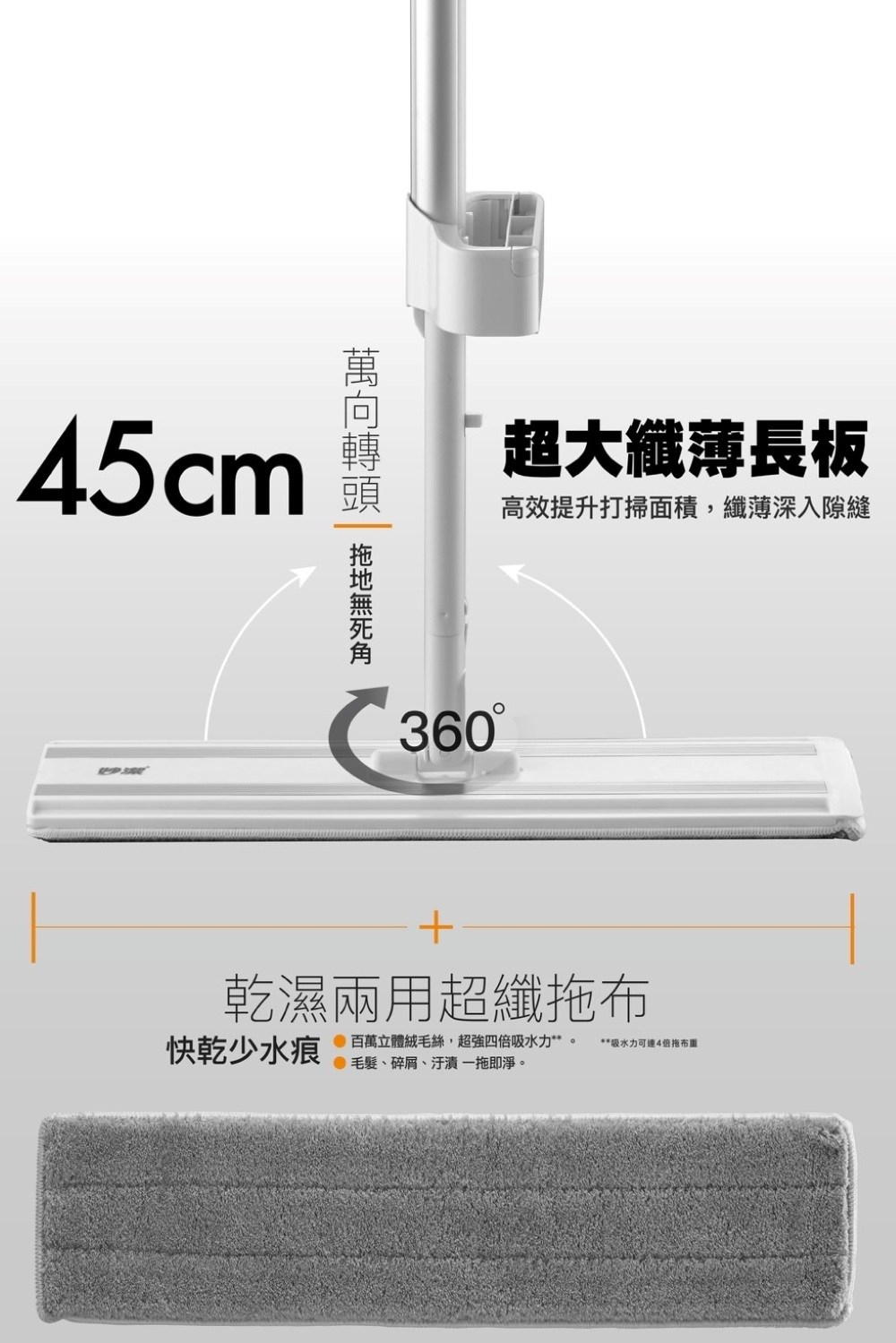 妙潔 大魔淨免手洗刮淨平拖 + 超纖拖布 超大纖薄長板適用各種水桶 1組 拖把組最長 150cm + 超纖拖布 45 x 11.5cm