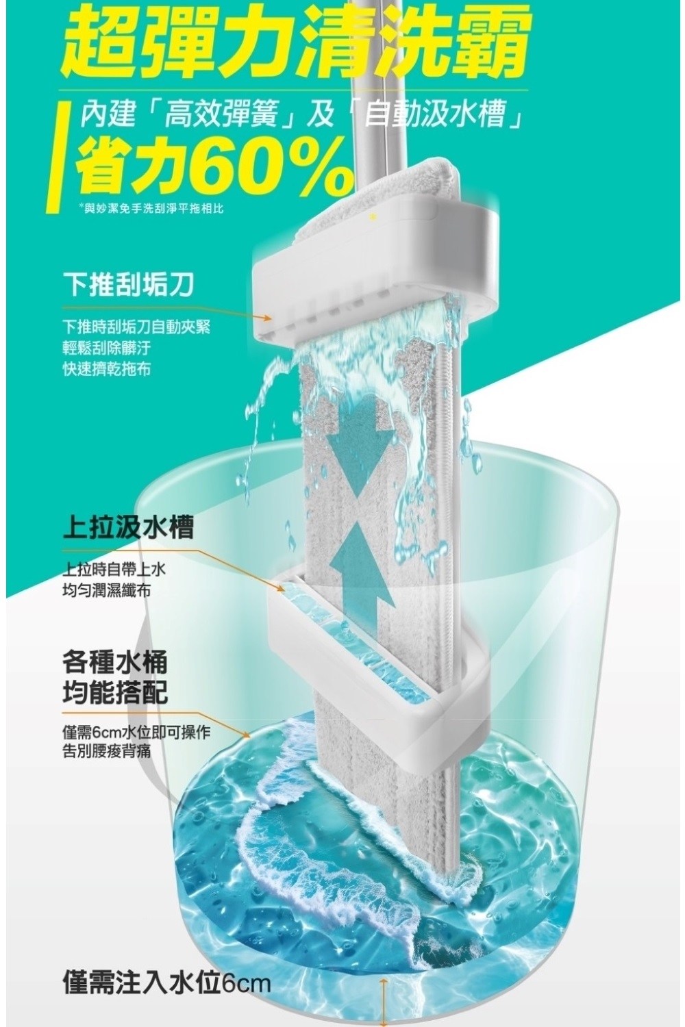 妙潔 大魔淨免手洗刮淨平拖 1桿1布 直立式清洗 省力 免手洗 單手清洗 拖地 拖把 平板拖 【愛買】