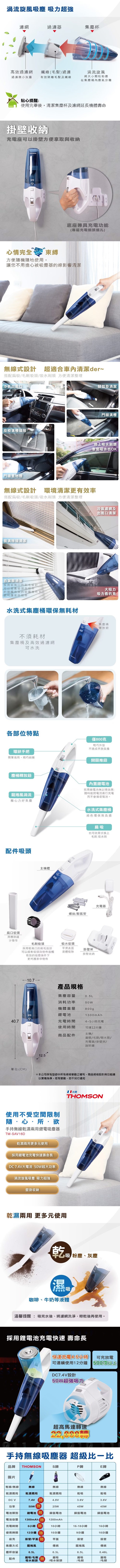 【THOMSON】【THOMSON】乾濕兩用手持無線吸塵器 TM-SAV16D