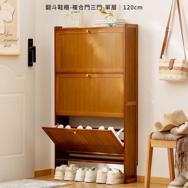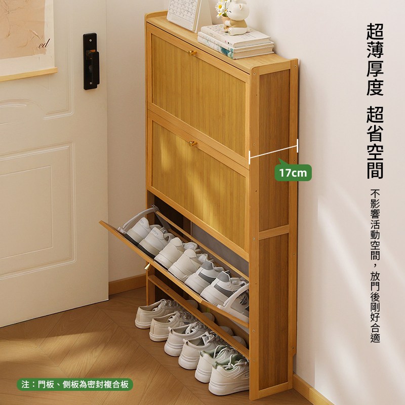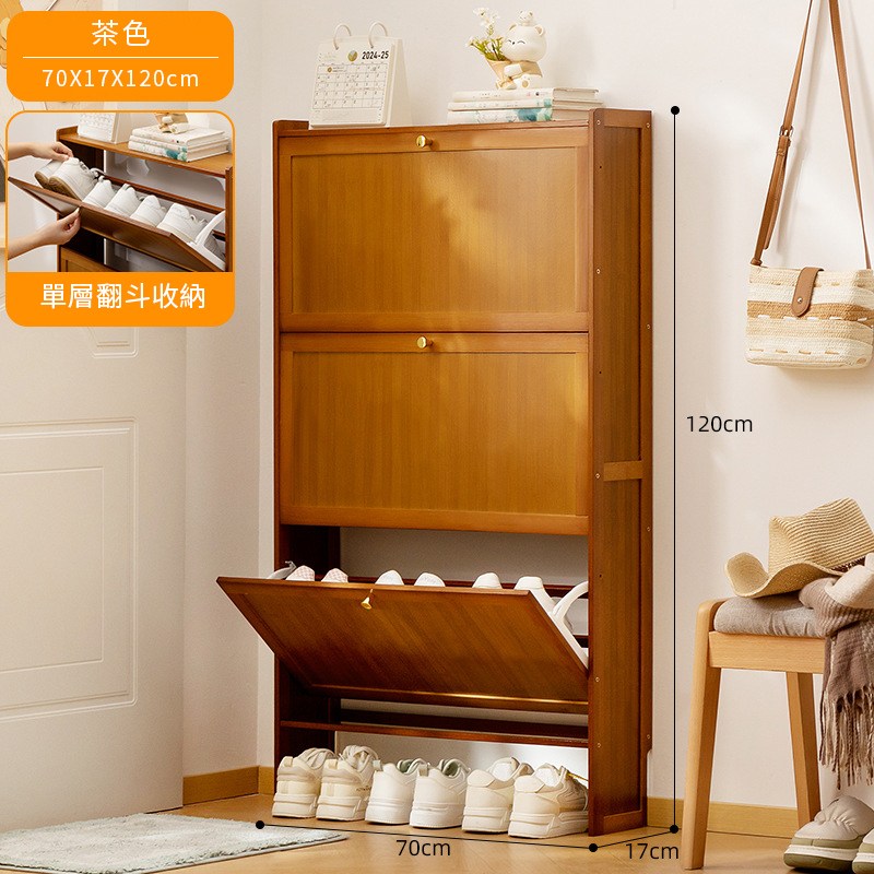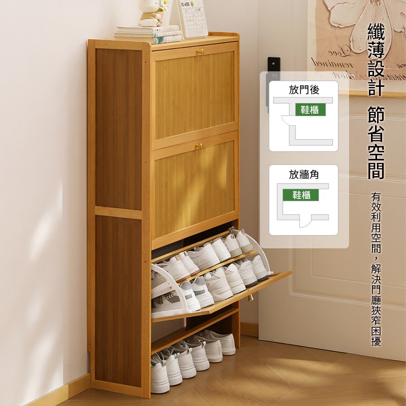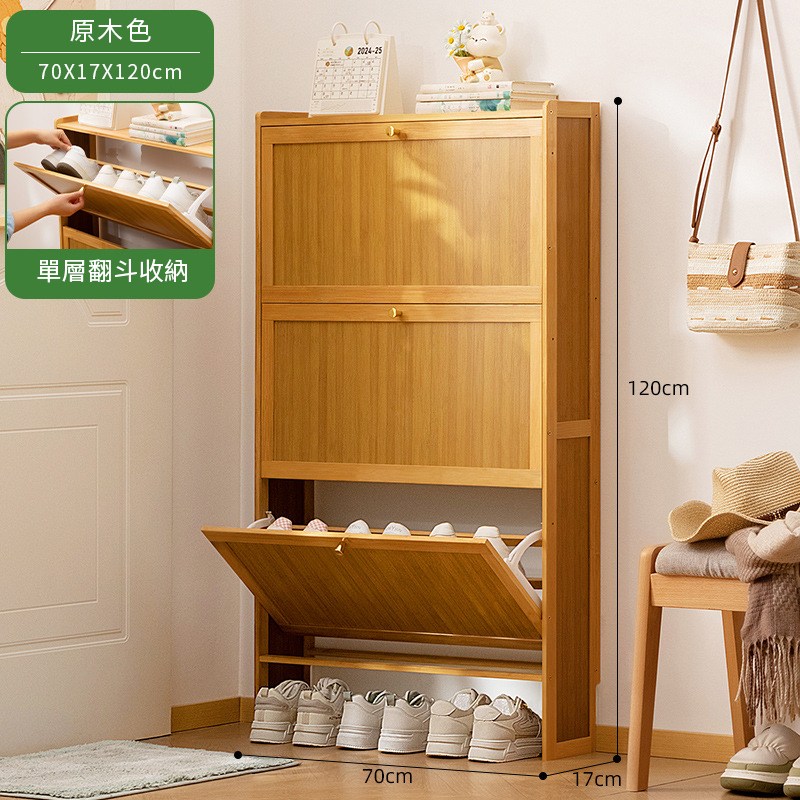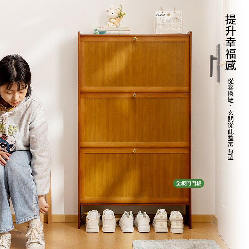 【HappyLife】楠竹超薄翻斗鞋櫃 三門70公分 Y12030原
