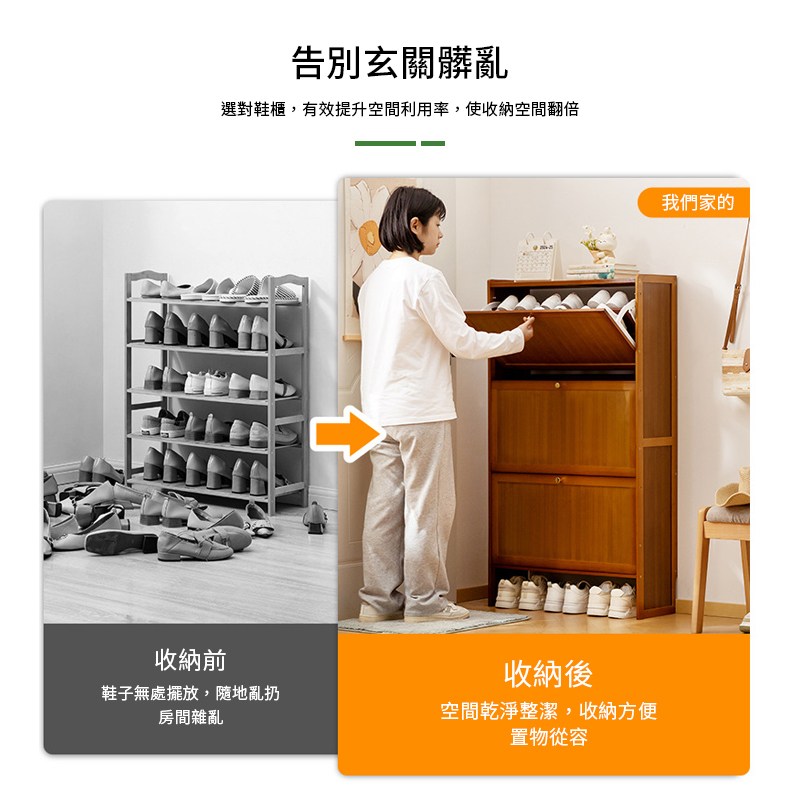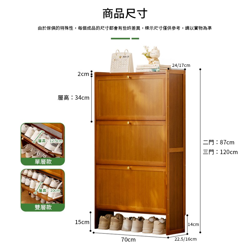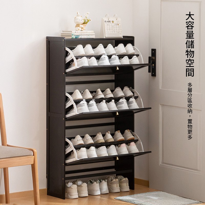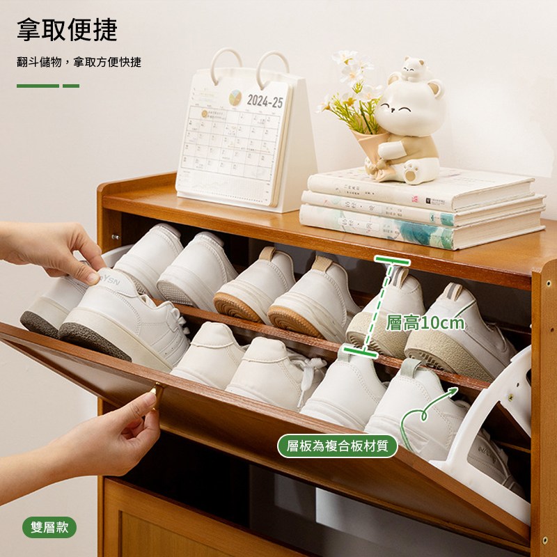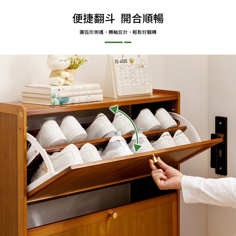 預計2/26前出貨【慢慢家居】免安裝-木頂超薄翻斗鋼製鞋櫃 (65/80面寬) 三層鞋櫃 拉門鞋櫃 收納鞋櫃 鞋架