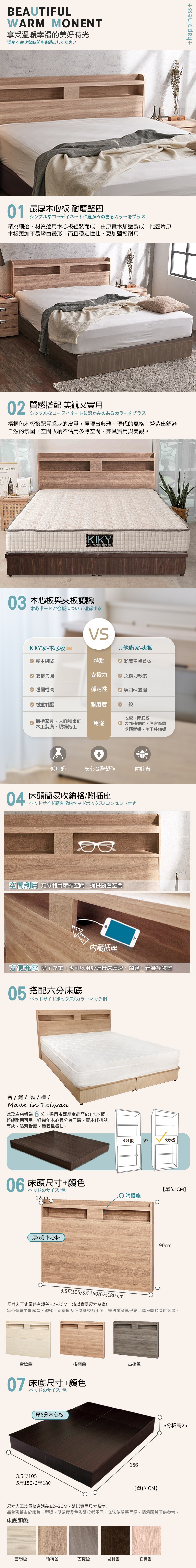 【KIKY】米月可充電收納二件床組 雙人加大6尺(床頭箱+六分床底)古橡色