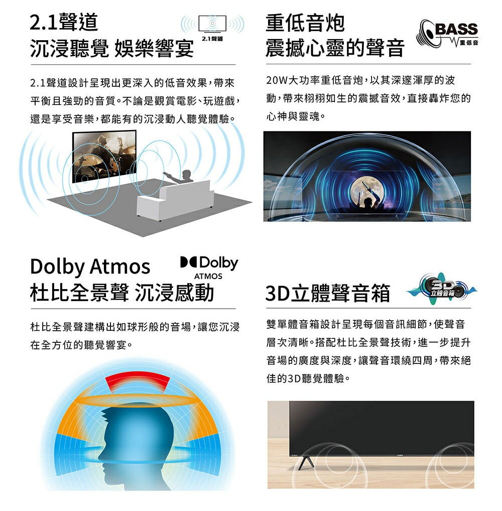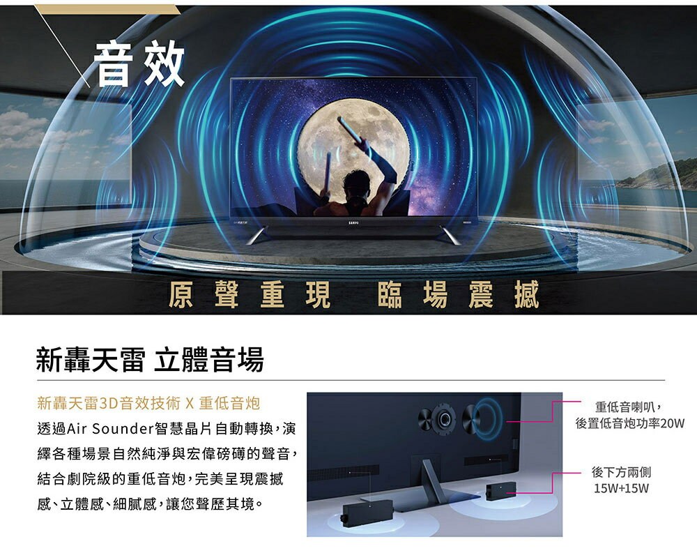 SAMPO聲寶 65吋 MINI QLED 聯網新轟天雷3D立體音箱液晶顯示器 QM-65MIW6210含基本安裝+舊機回收