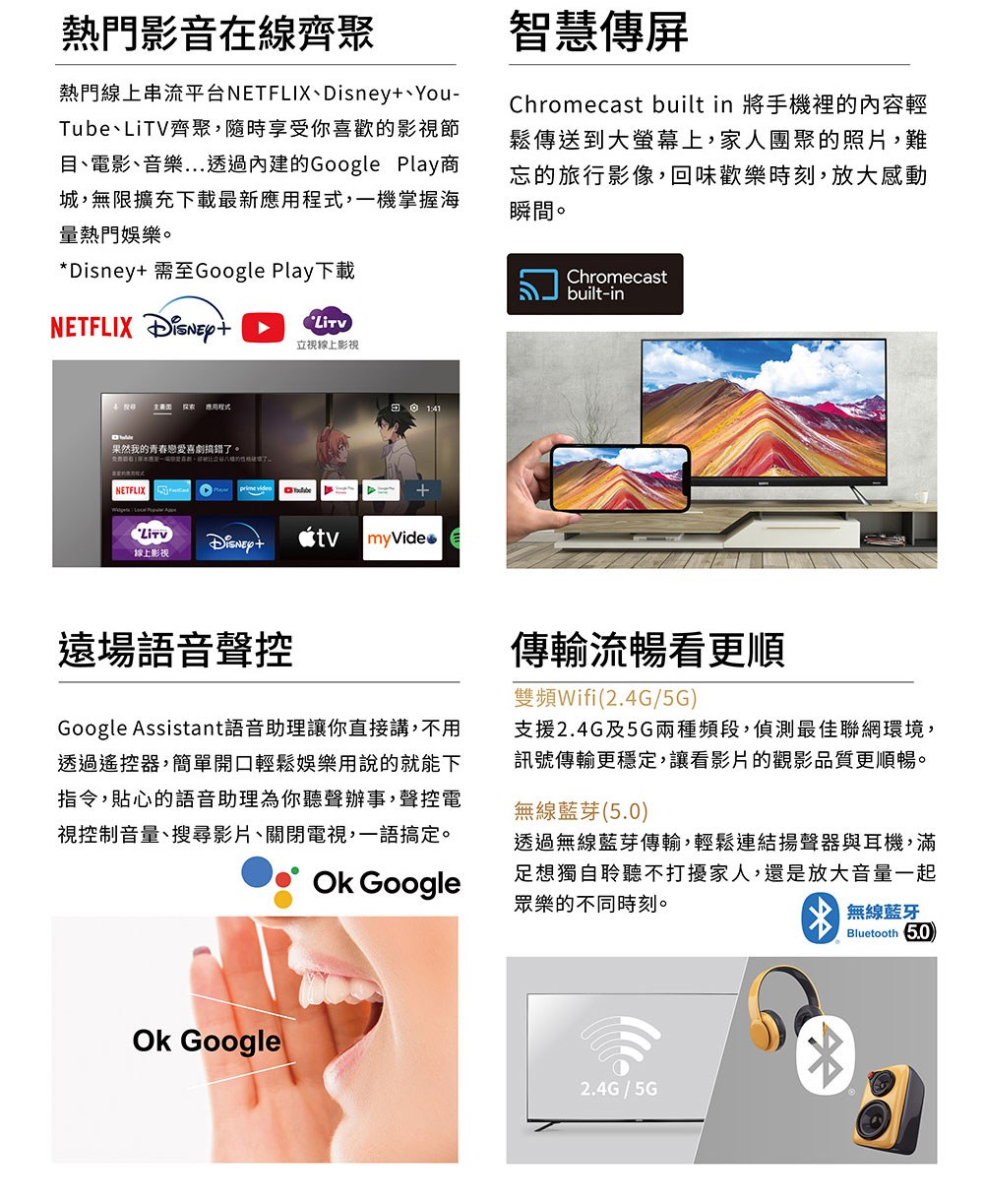 (無安裝)聲寶43吋4K連網GoogleTV顯示器EM-43JCS230