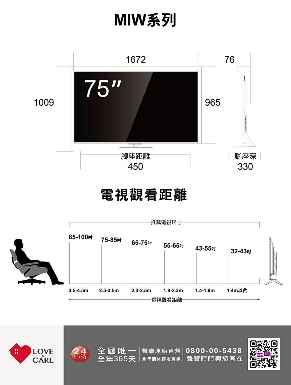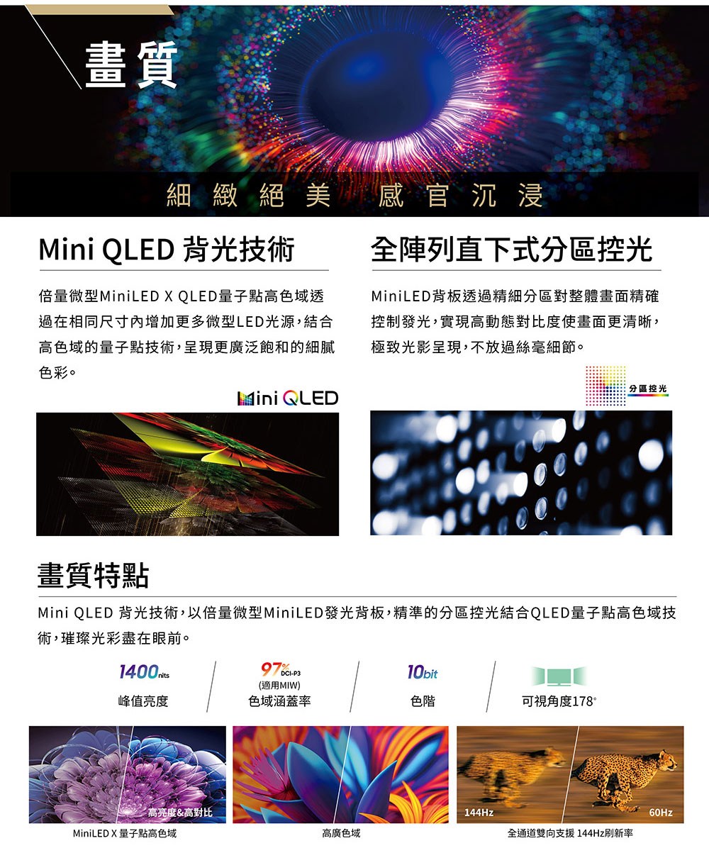 SAMPO聲寶 65型 QM-65MIW6210 聯網 MINI QLED顯示器 4K HDR新轟天雷