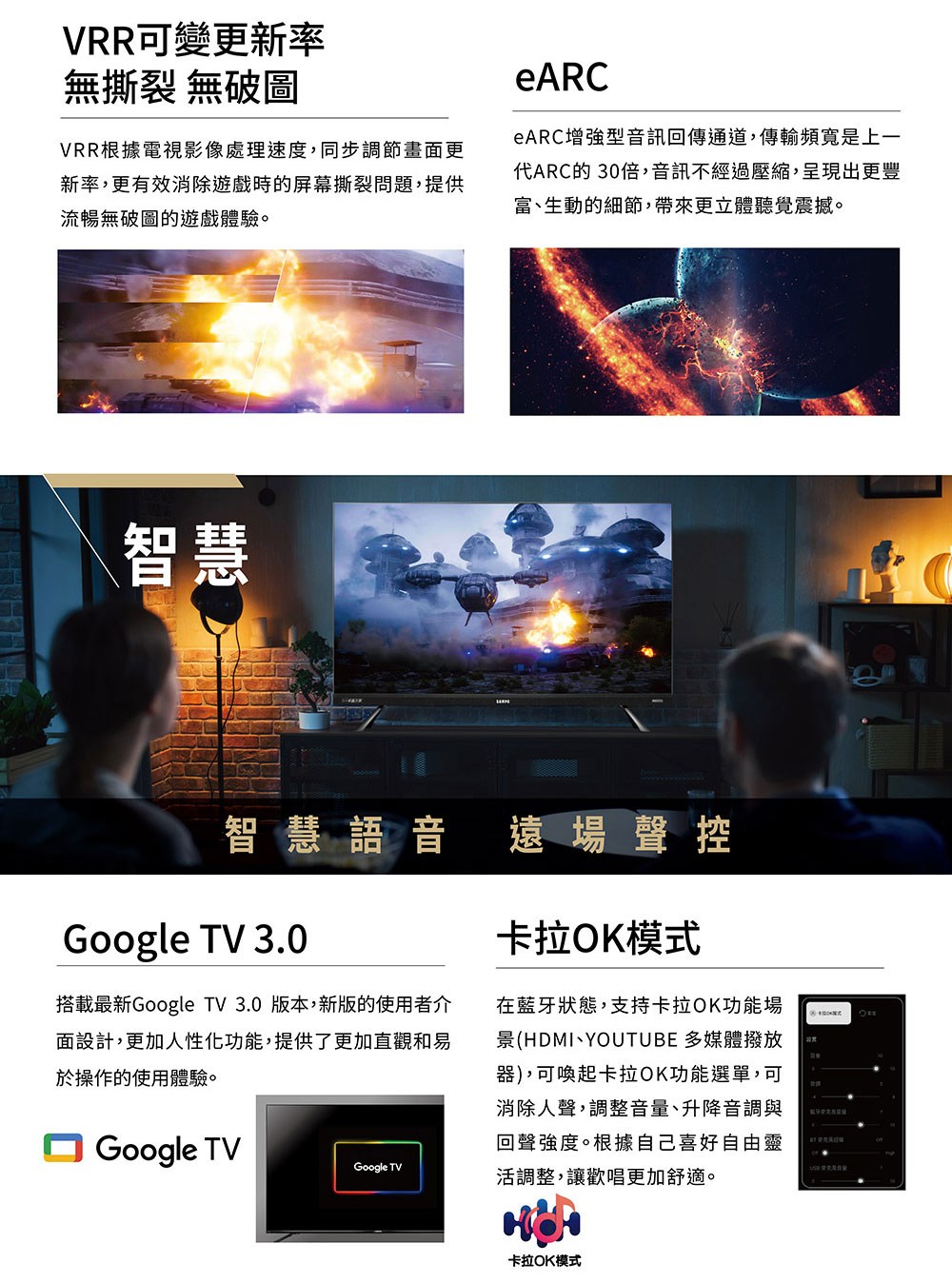 【SAMPO 聲寶】65吋4K mini QLED轟天雷連網智慧顯示器 QM-65MI3200