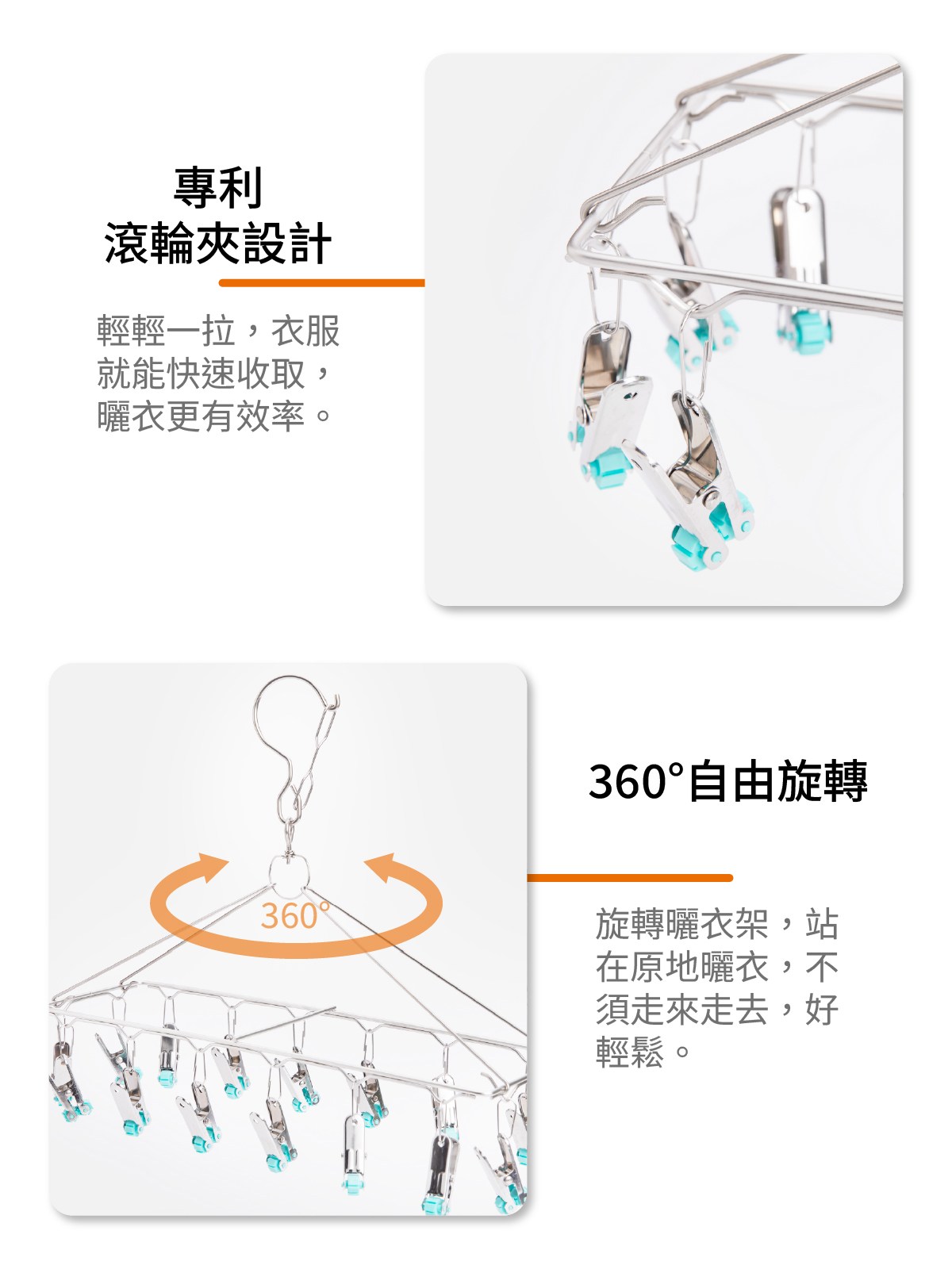 HK 不鏽鋼長方形曬衣架 20夾 360°旋轉卡扣鎖止結構 加粗 銀色 1個