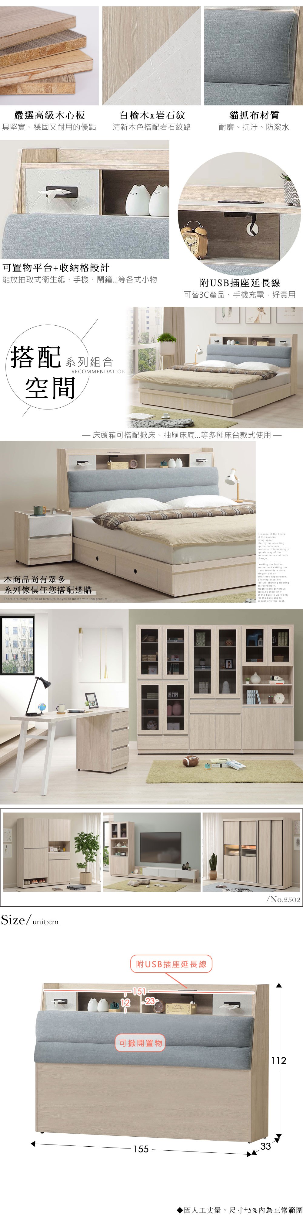 ASSARI-傢集910型貓抓皮床頭片-單大3.5尺