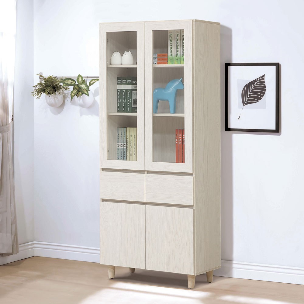直人木業-DORIS現代風中抽玻璃高被櫥書櫃80公分