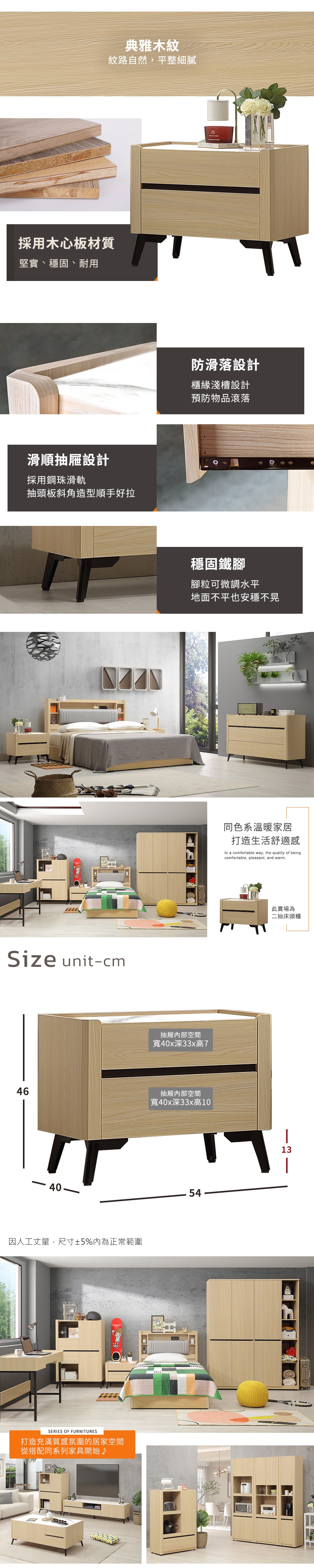 【綠活居】奧斯陸 現代1.8尺二抽床頭櫃/收納櫃-54x42x46cm免組