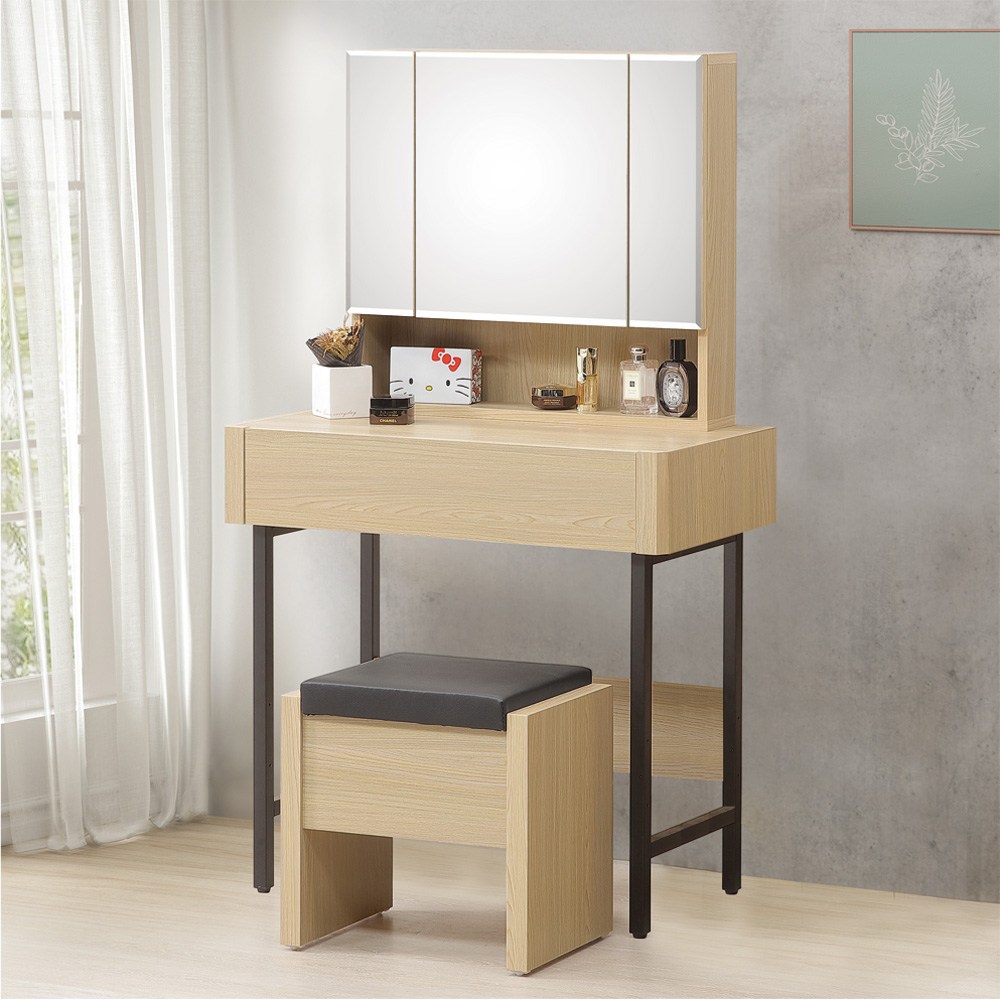 AS雅司-依若3尺掀鏡台(含椅)91x42x76cm