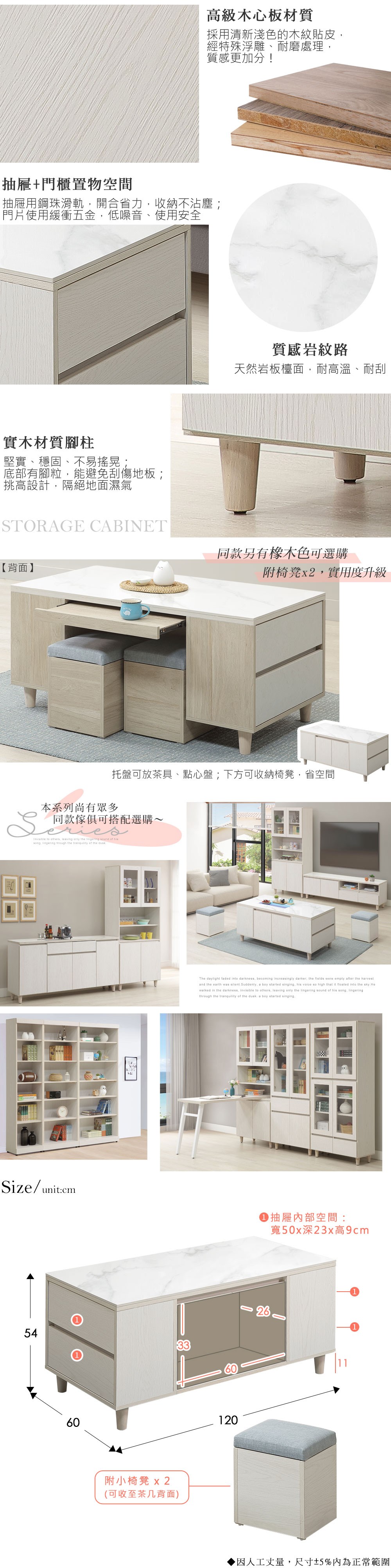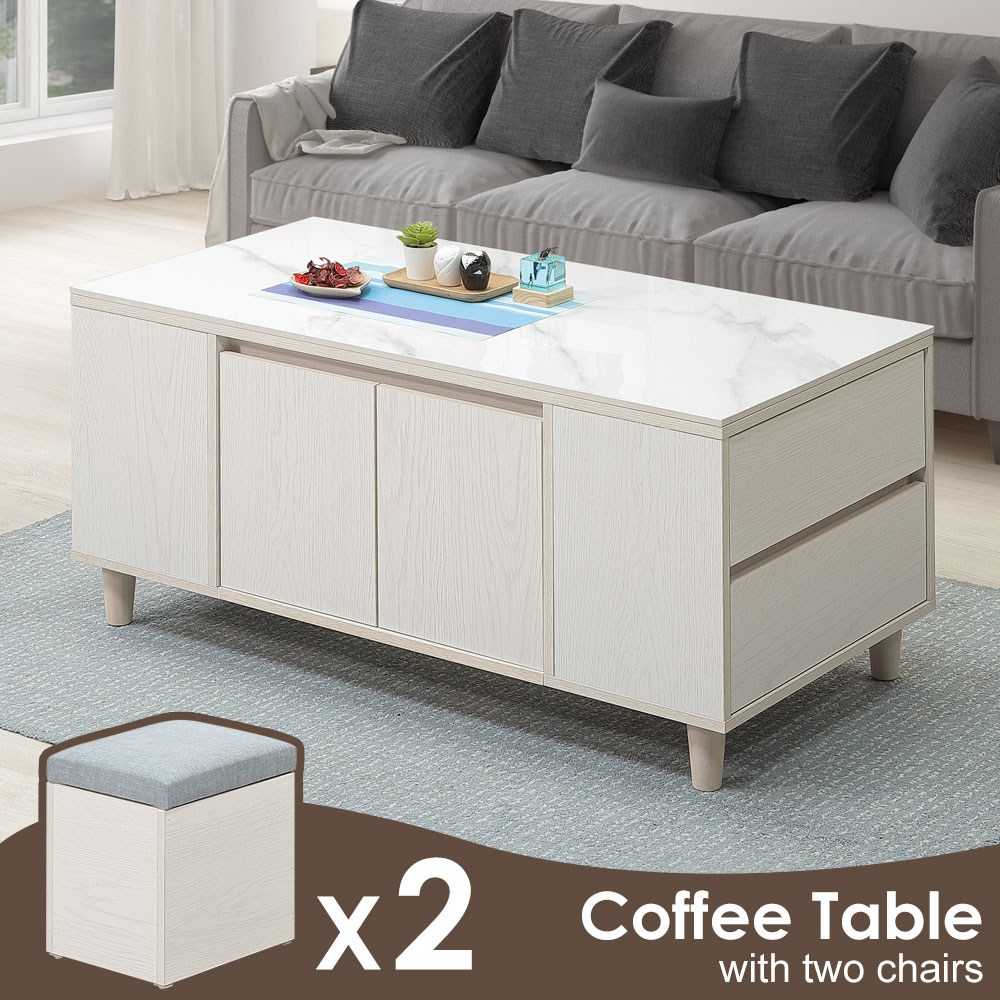 【日安家居】MIT愛拉4尺岩板茶几-含椅凳/二色白梧桐