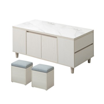 hoi!林氏木業北歐簡約二抽儲物伸縮岩板茶几組合 UM4L