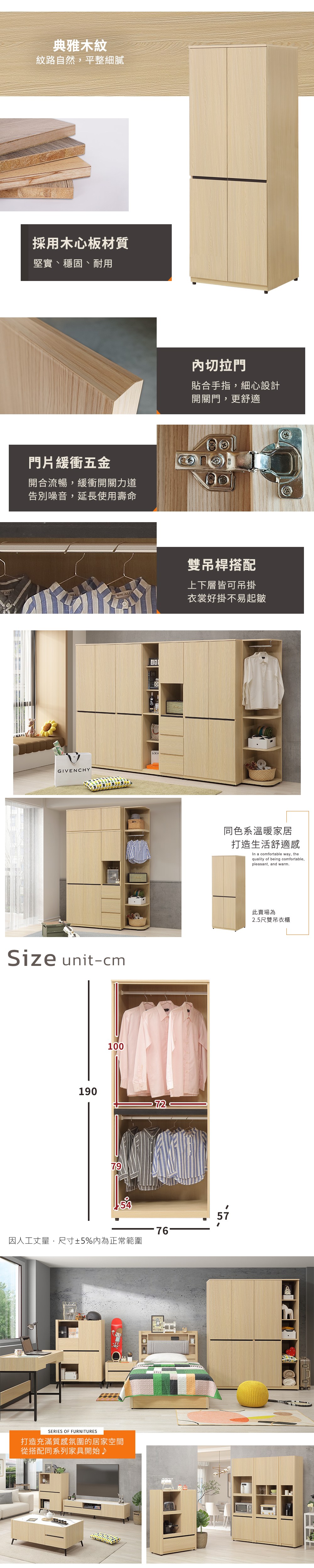 Homelike 喜家居2.5尺雙吊衣櫃(2501)