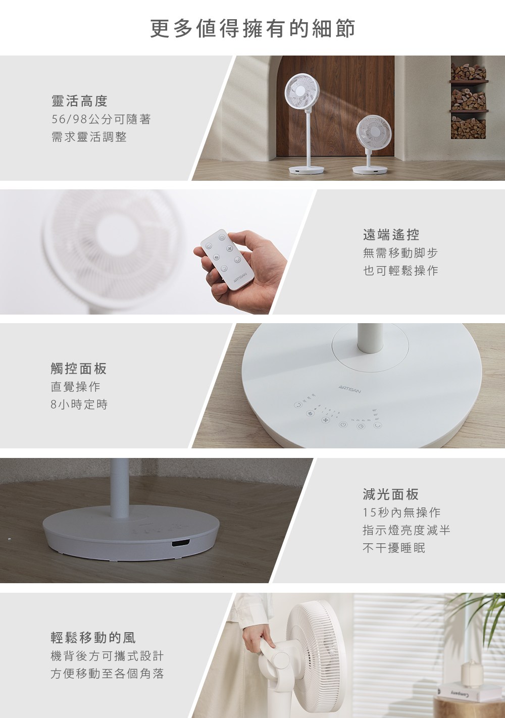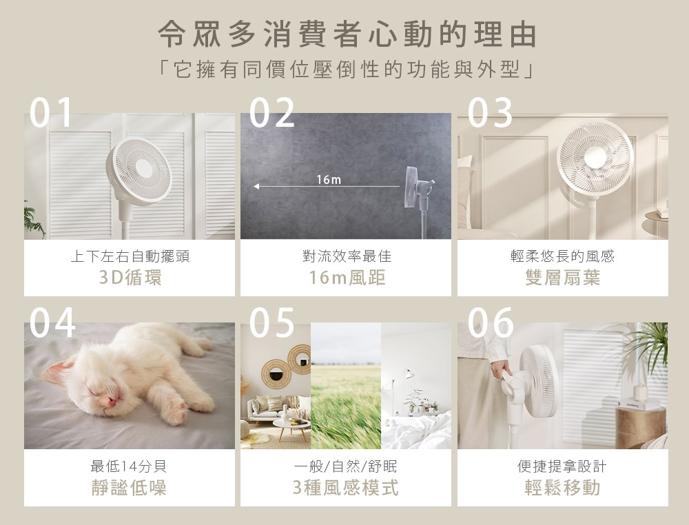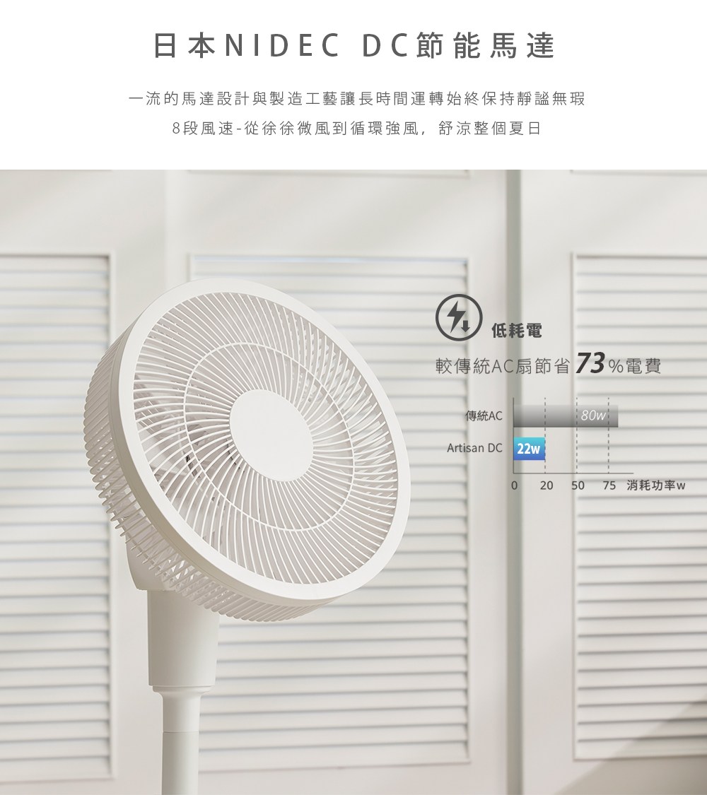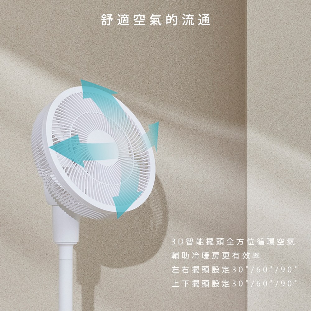 Solac DC行動風扇 6段風速 左右60°/往上45°/往下5°擺頭 260*H520mm SFT-F07W 白色