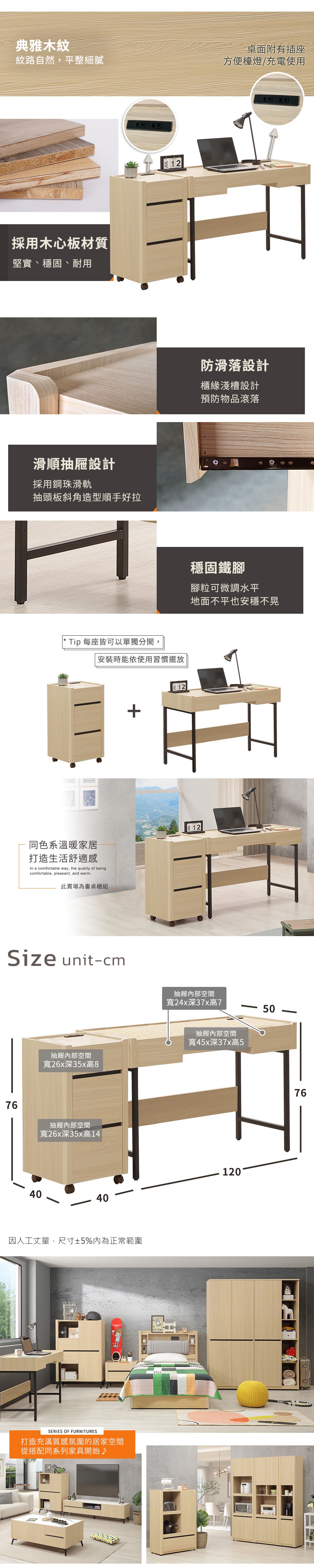 Homelike 喜家居5.3尺附插座書桌櫃組(2501)-160x50x76公分
