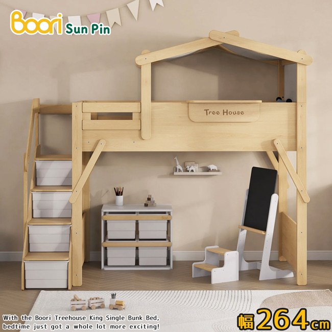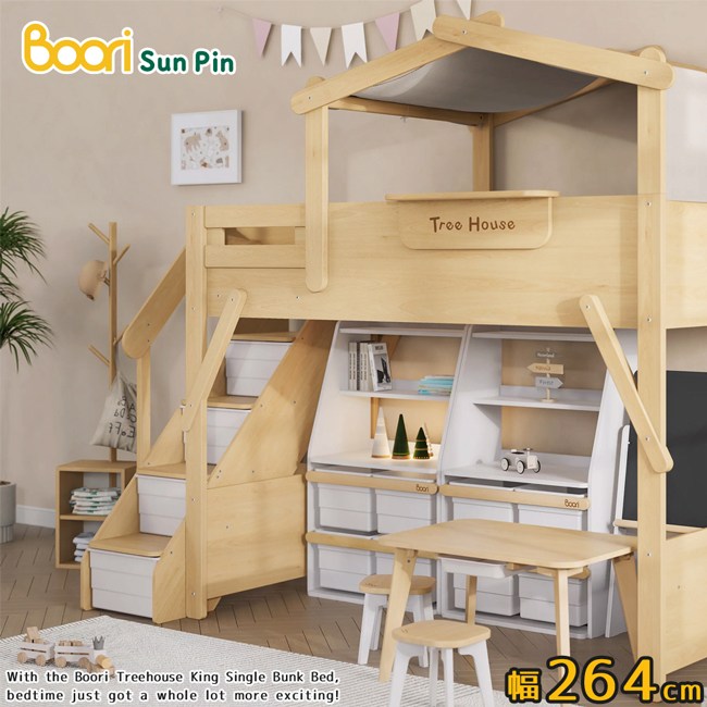 【Boori】芙瑞斯加長樹屋梯櫃高架床‧幅264cm(原木色)