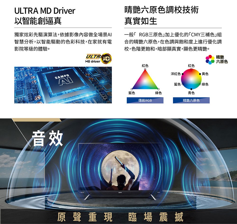 【SAMPO 聲寶】QM-65MI3200 65吋 4K mini QLED轟天雷連網顯示