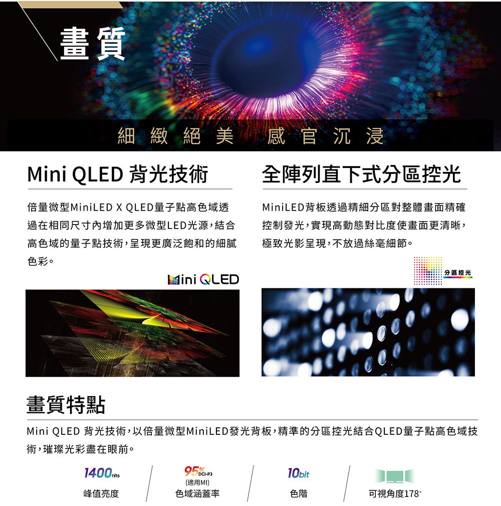 SAMPO 聲寶 65型 QM-65MIW6210 聯網MINI QLED顯示器 4K HDR新轟天雷