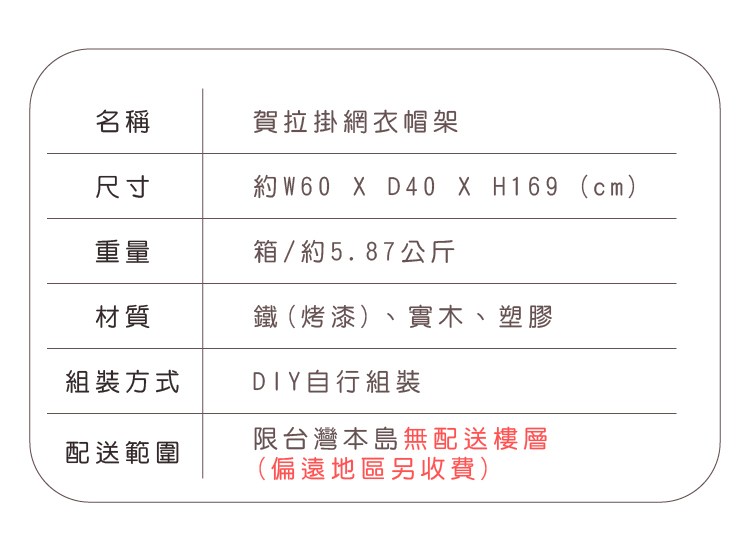 –配送範圍:配送台灣本島-無配送樓層(偏遠地區需另加收運費專人與您聯繫)。