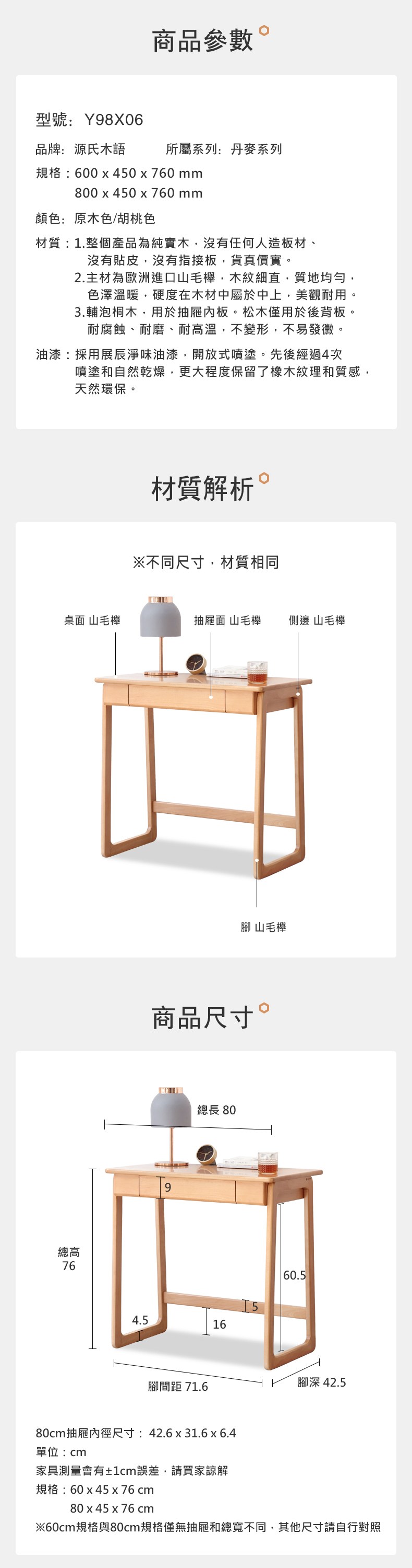 源氏木語丹麥實木小書桌0.6M Y98X06