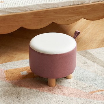 原木日式實木科技布小圓凳 XZ6010 粉色