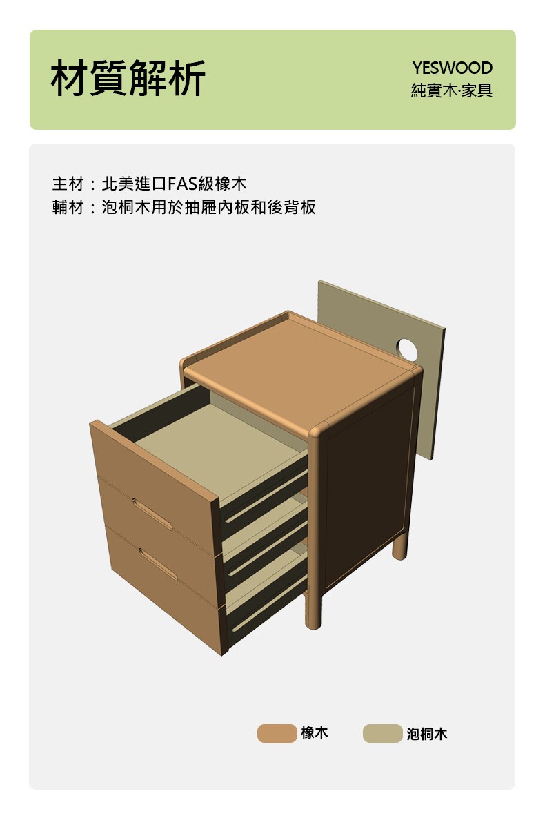 源氏木語平原橡木原木色雙抽床頭櫃0.4M Y10A01