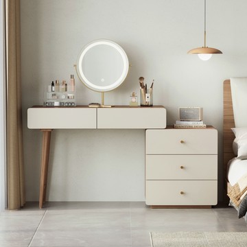 *注意:以下為情境示意圖,實際商品款式為北歐空島三斗櫃伸縮化妝桌 UV2C 胡桃色 (附鏡)