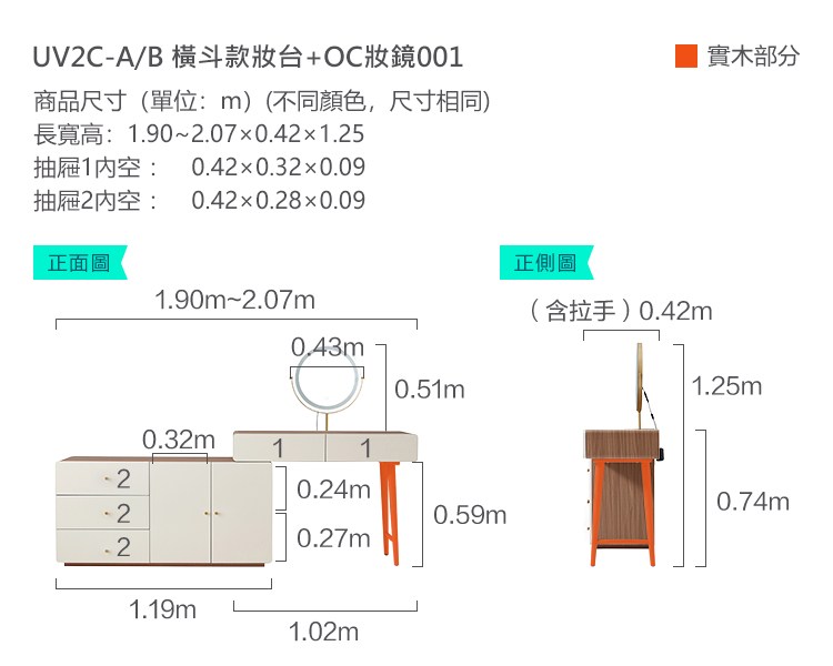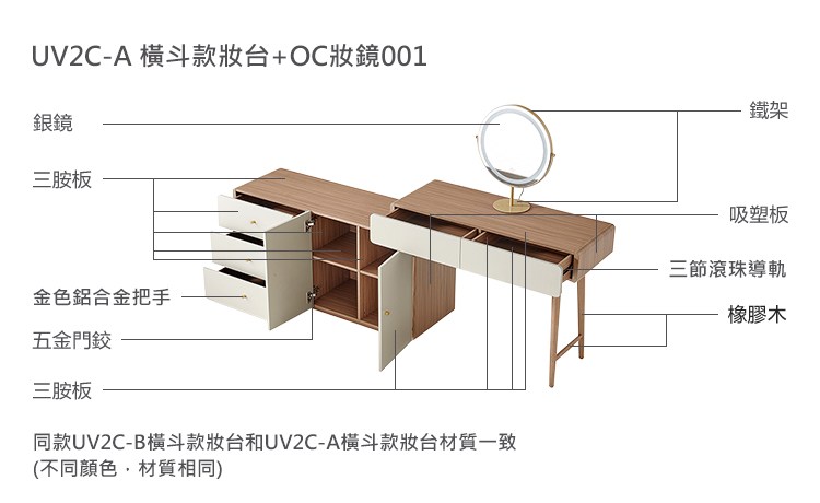 AS DESIGN雅司家具-1013化妝桌-附椅-尺寸化妝桌100*40*75.6cm輔助櫃160*40*55cm