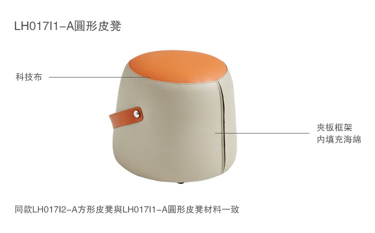 林氏木業簡約時尚方形小皮凳 LH017-橙色