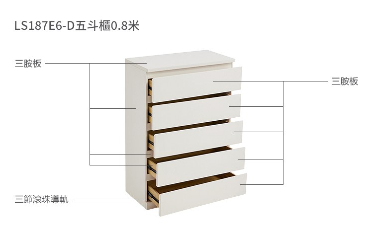 林氏木業北歐風百搭五層抽屜櫃 LS187-白色