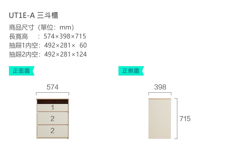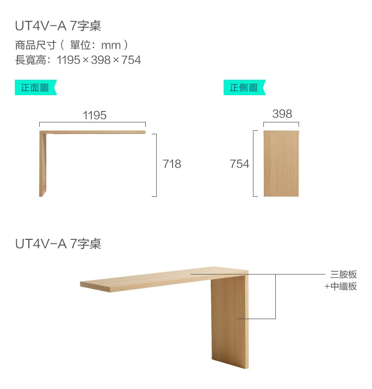 組合內容:UT1E-A-三斗櫃+UT4V-A-7字桌+通用妝鏡01-A