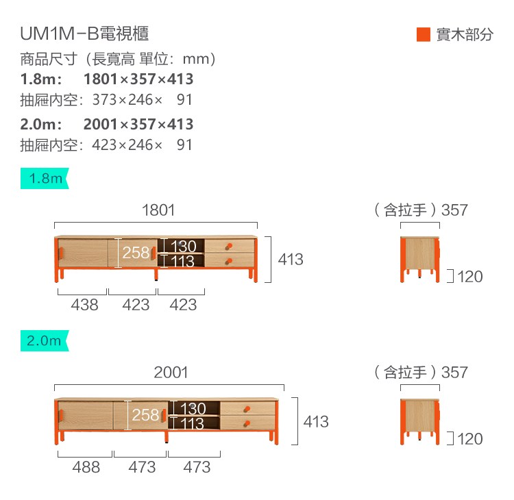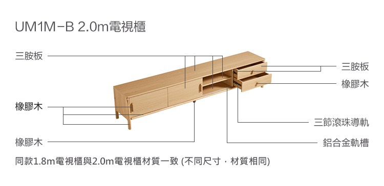 *注意:以下為情境示意圖,實際商品款式為北歐簡約二抽滑門電視櫃2M UM1M