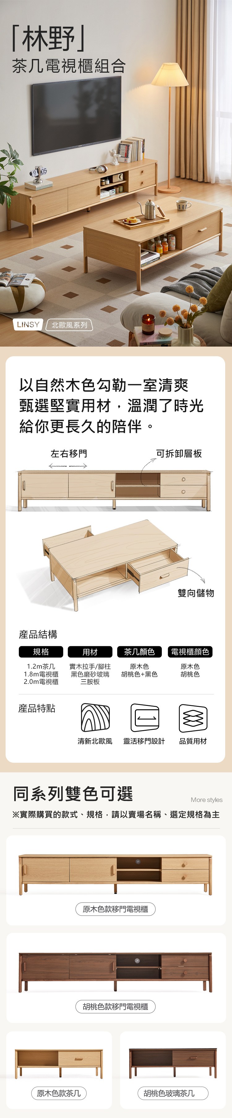 林氏木業北歐簡約二抽滑門電視櫃2M UM1M