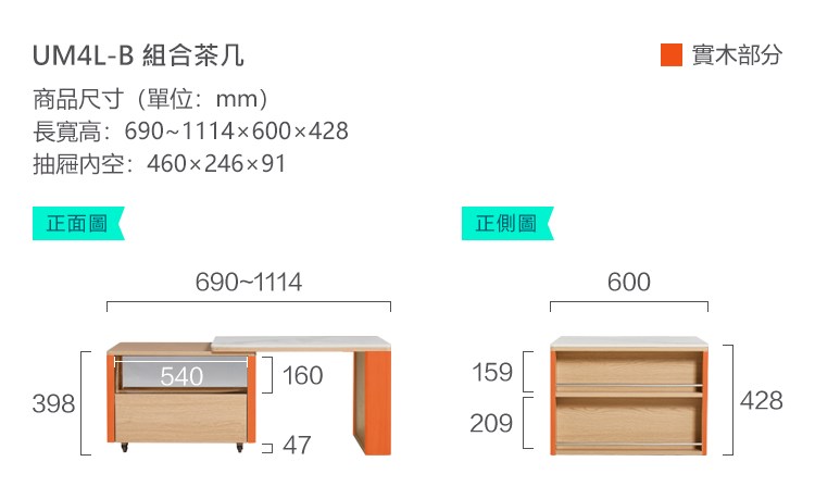 *注意:以下為情境示意圖,實際商品款式為北歐簡約二抽儲物伸縮岩板茶几組合 UM4L