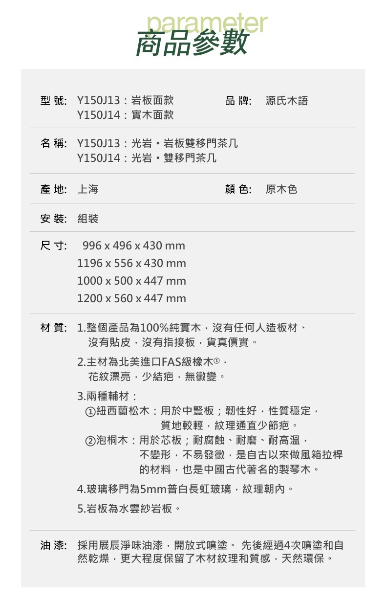 源氏木語光岩橡木原木色玻璃移門岩板茶几1M Y150J13