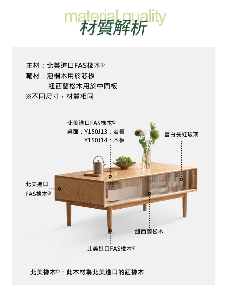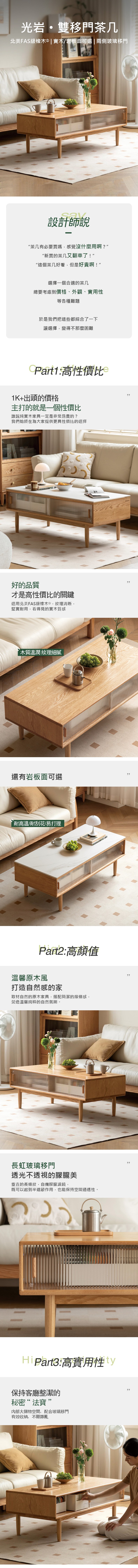 *注意:以下為情境示意圖,實際商品款式為光岩橡木原木色玻璃移門岩板茶几1M Y150J13